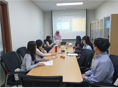 전남대학교 국제협력본부(AIMS사업단)가 초청한 2019학년도 봄학기 CAMPUS-Asia AIMS사업 교환학생 중 ‘언어문화(Language & Culture)’ 전공 학생들과 2019학년도 가을학기에 해외로 파견 나갈 예비 교환학생들이 서로 연결하여 서로의 국가, 문화, 사회, 언어를 공유하는 자리를 가졌습니다.