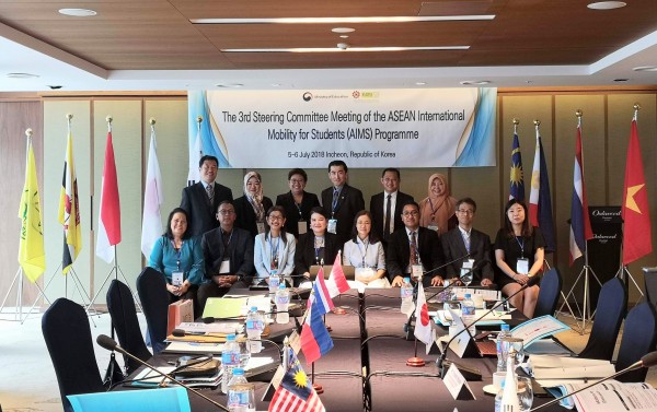 ? 한국대학교육협의회(이하 대교협) 국제화지원팀은 2018 년 7월 5일 목요일과 6일 금요일 양일간 ‘2018 CAMPUS Asia-AIMS 사업 제3차 운영위원회 회의'를 개최하였다. 본 회의에는 한국 교육부, 대교협 국제화지원팀, ASEAN 4개국 및 일본의 교육부 및 대학 관계자, SEAMEO RIHED(Southeast Asian Ministers of Education Organization, Regional Institute of Higher Education and Development) 관계자 등 총 28명이 참석하였다.